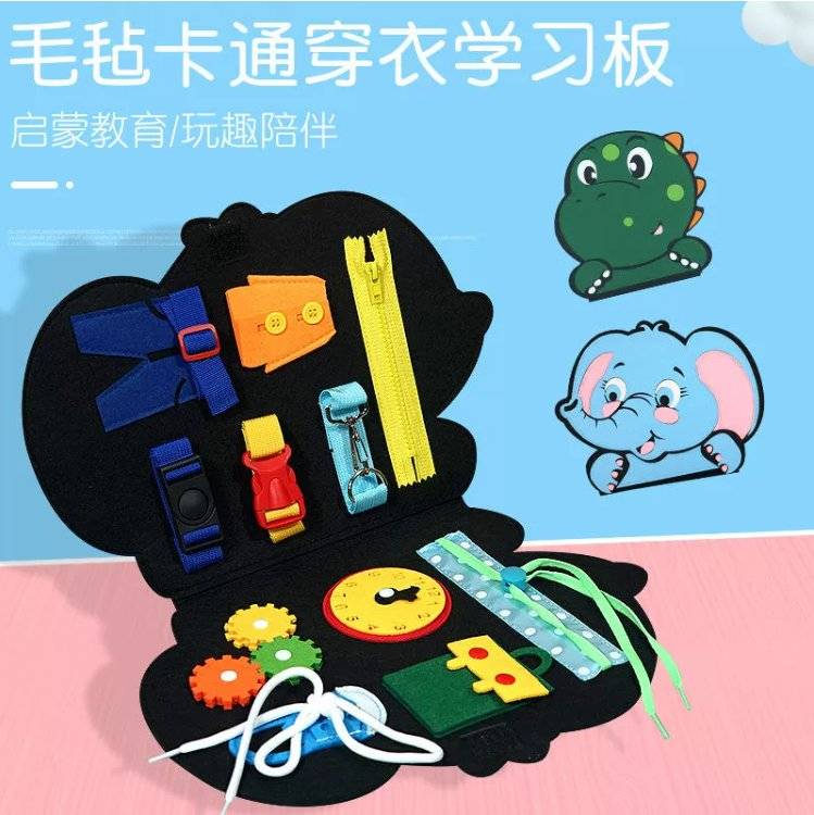 宝宝学习益智类玩具毛毡学习板卡通穿衣板生活技能训练教学富发